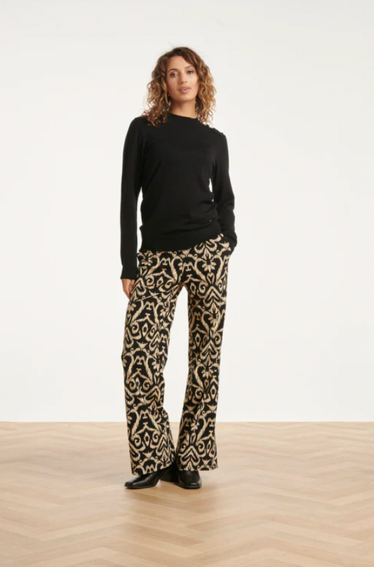 LosvallEnde Zwart Wit Broek Met Wijde Pijpen en Tweedlook Stof | Black White