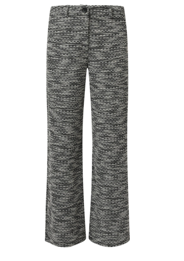LosvallEnde Zwart Wit Broek Met Wijde Pijpen en Tweedlook Stof | Black White